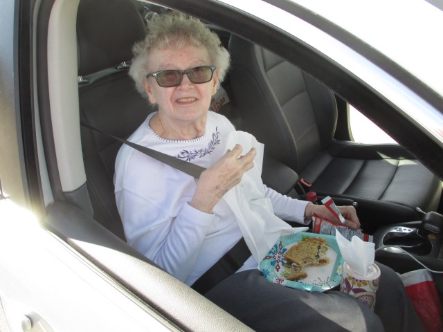 Mum enjoys our “restaurant” with a view!