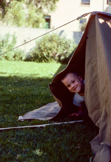 Young Rich practices camping in the back yard!