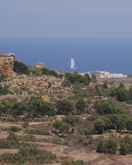 A prime spot for keeping watch on the surrounding countryside and for mounting a good defense, the hill is said to have been inhabited in the Bronze Age, become the Roman town of Gaulos, been claimed for the Order of St. John, pillaged by Ottoman invaders, occupied by the French and commandeered by the British.  (Pausing here to breathe…)