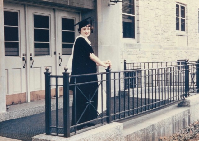 And maybe a necessary comfort with change made it easy for Mum at just 16 to board a train on her own to arrive early one morning in Grinnell, Iowa where she’d earn a bachelor’s degree in Political Science from Grinnell College. Not content to stop there, Mum went on to the University of Wisconsin in Madison where, while serving as house fellow to 50 girls in a dorm, she picked up a Master’s Degree and teaching certificate, and somehow found spare time to play bridge – which is how she met my dad!