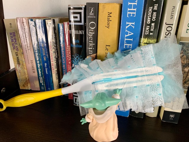 I love Grogu using the Force to dust with the Swifter. Awesome.