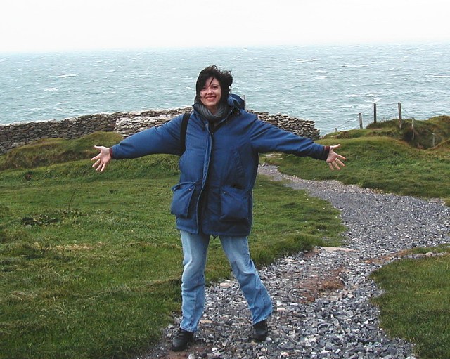 We braved some blustery winds to explore Dunbeg Iron Age Fort that (mostly) clings to cliffs at the edge of the sea. Some of this ancient site has fallen off the eroding coastline, and I was nearly blown off myself – but it doesn’t seem to be bothering me.