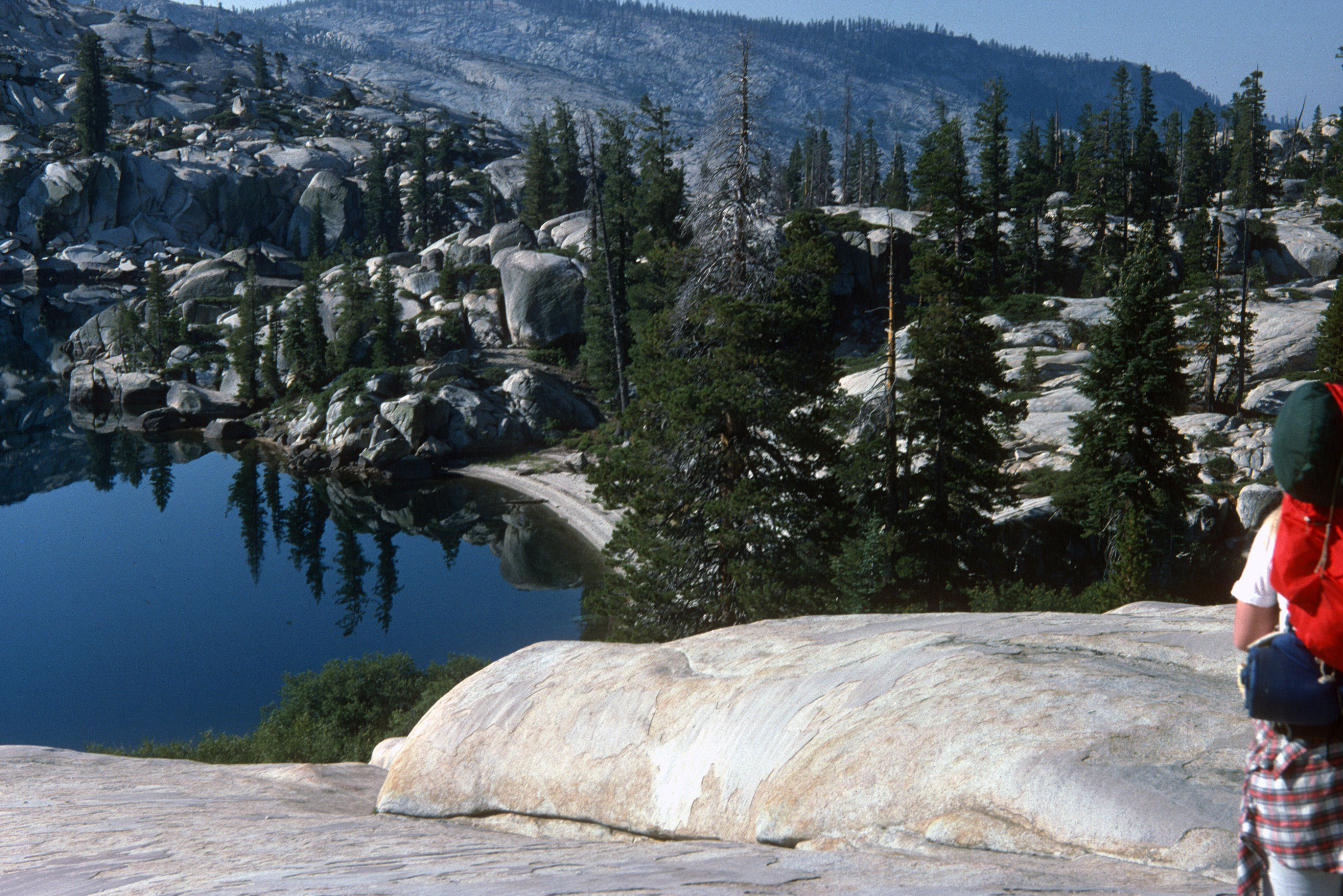 We discovered it at one end of a small jewel of crystal clear water set among vast and gleaming granite faces. Apart from the odd “duck” trail markers we encountered and followed on our way, this tree-cloaked spot contained the only evidence of human intrusion perhaps for miles around.