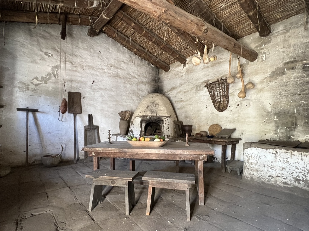 Buildings here are outfitted to show the kinds of work and accommodations that would have been necessary to keep a mission running:
