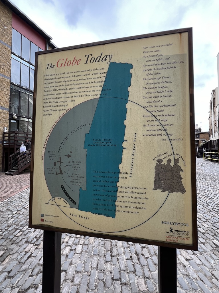 I knew though that this wasn’t quite the spot where the original theater stood. So while exploring what was new along the lively South Bank, I hunted down the very place right nearby where the Globe was first built in 1599, and where a few bits remain beneath:
