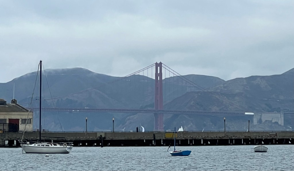 I had the privilege of growing up with a view of this grand landmark from the family room window! I’d also get to drive over it now and then, and I cruised under it aboard a ship bound for Australia when I was four! I recall Mum’s waking me so I could perch on a step stool and peer through our cabin’s porthole as we glided through the San Francisco Bay. Mum thought that was an experience I shouldn’t miss – and I’m so grateful!