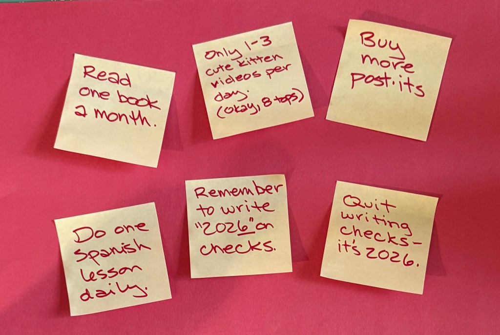 Late in the resolving game, I caught a CNN interview with author and “happiness expert” Gretchen Rubin. She suggested making the process less angsty by picking a nice overall theme which would inspire specific actions (I believe her 2026 theme is “neighbor”), and then to stay on track by choosing a “whimsical” visual reminder for that theme.