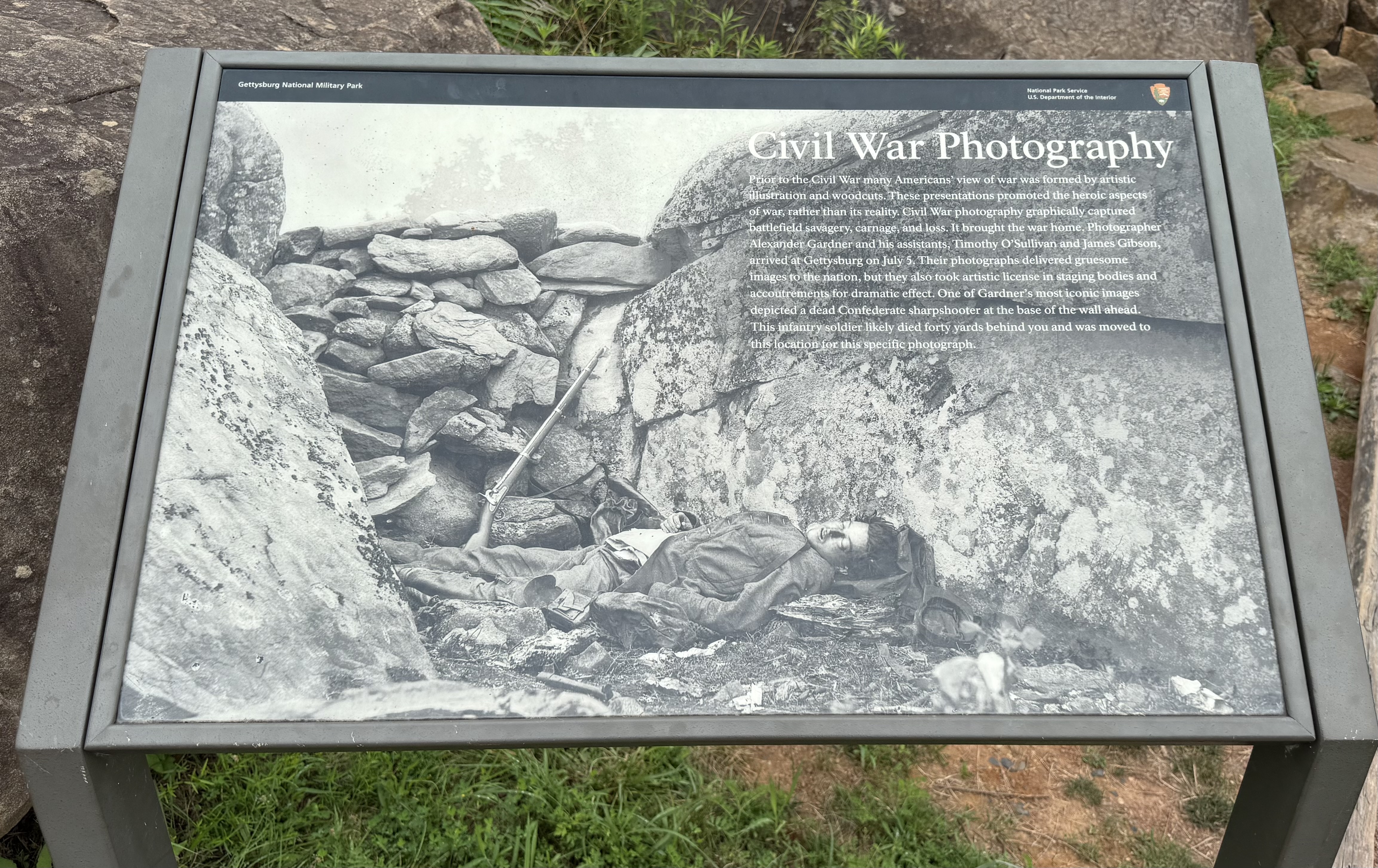 There was the rocky Devil’s Den where Confederate soldiers sustained huge casualties while forcing a Union retreat. And almost immediately after, the Gettysburg story began to have grisly photographs to include in its pages…