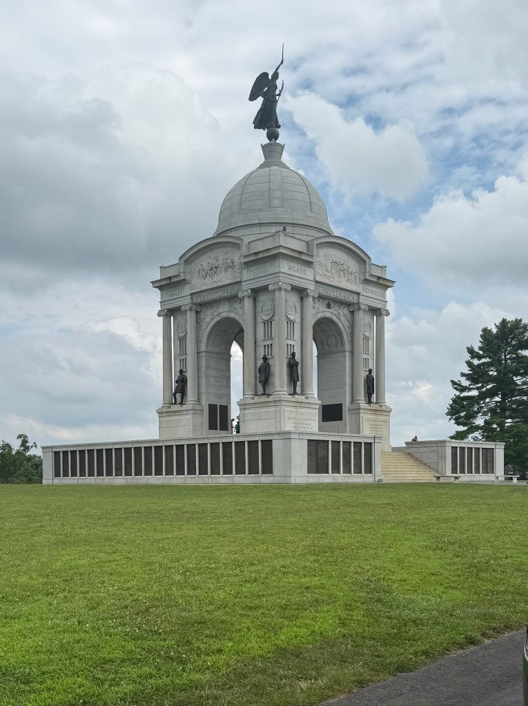 That item took me right back to last summer’s trip to Pennsylvania when I’d been thrilled to walk the grounds where Lincoln gave that famous speech! After a near lifetime of soaking up all the ways in which the Civil War battle there has been depicted, I finally visited Gettysburg National Military Park for the first time to let it all truly sink in!
