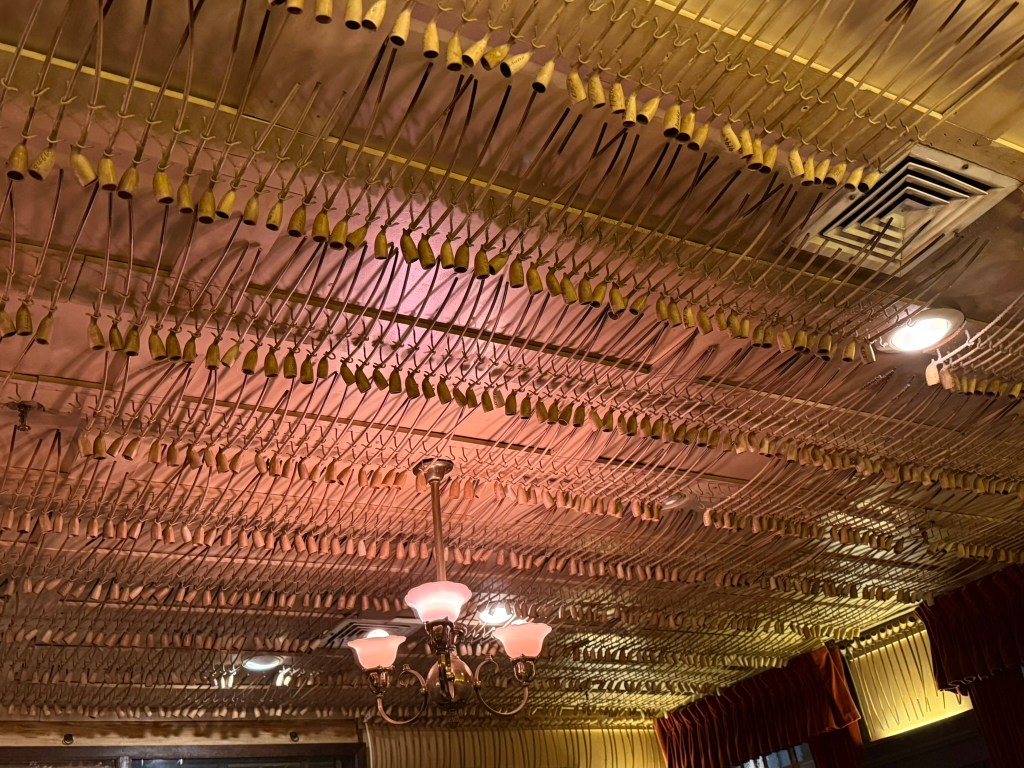It was terrific in culinary terms (special shout-out to the creamed spinach), but also historically (the place became Keens in 1885 and has dodged the wrecking ball when so many other buildings from the time didn’t), and even decor-ally (I’d sure never dined under a ceiling covered in churchwarden smoking pipes before)! The experience satisfied my appetite in so many ways – and to share it all with great company was a real joy!